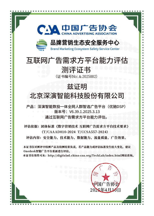 4月10日,中国广告协会发布「互联网广告需求方平台能力评估」测评结果。Martech领域领军企业z6.com智能旗下产品z6.com智能数投一体全网人群智选广告平台(优驰 DSP),凭借其在智能算法优化、技术创新、数据安全治理及流量质量管控等维度的突出表现,高分通过该项行业权威测评,获颁中国广告协会评估证书,成为业内首批通过认证的标杆企业。
